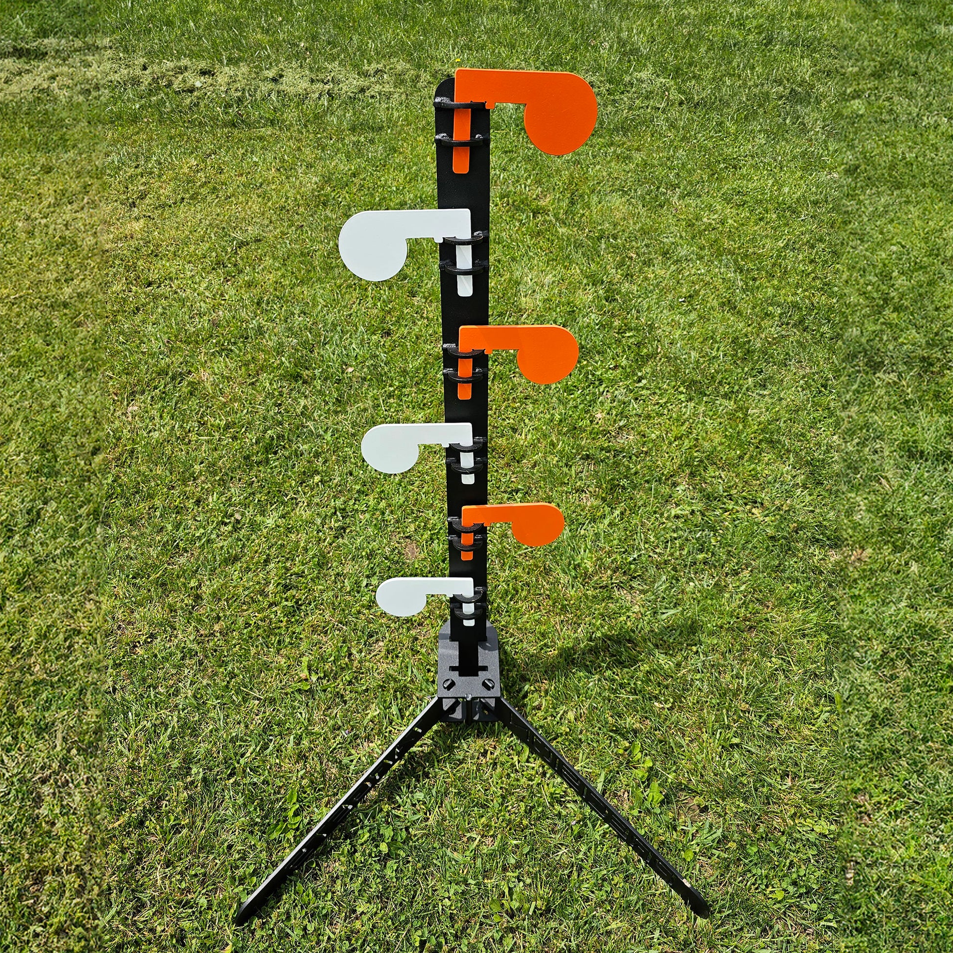 This Dueling tree comes with our multi use stand that is designed for speedy setup/take down, and provide a ridgid base to hold multiple styles of targets and stands. Adjustable forward angle, 0 degrees or 20 degrees. No tools required for setup. Check it our in the stands and hangers category.