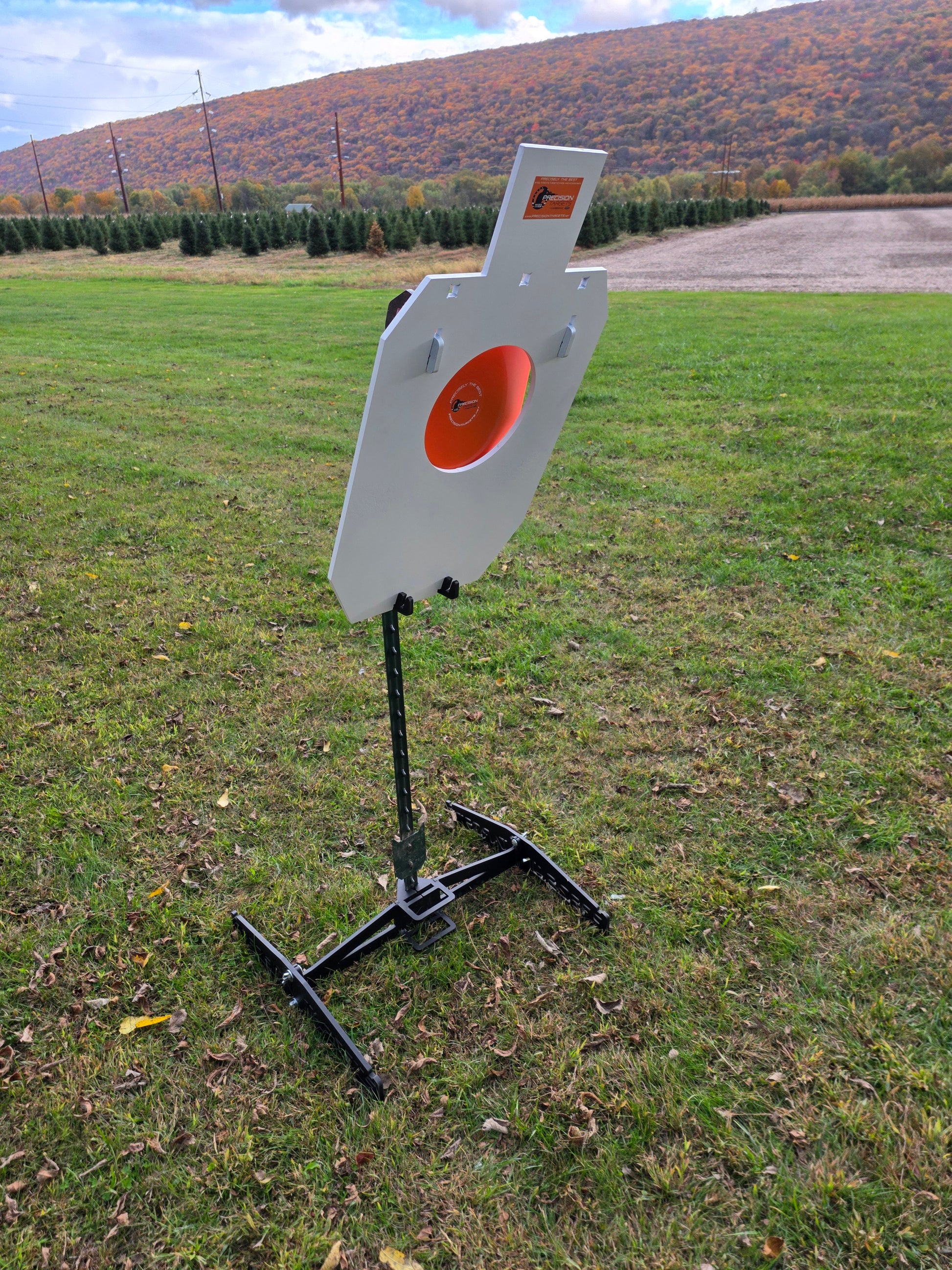 Precision Targets® AR500 3/8" Steel IDPA 17.375" x 30" Plate + 8.5” Center Mass Gong + 3” x 3” Head Shot Gong - Powder-Coated, T-Post / 2x4 Mount - Rifle & Pistol Use (See Velocity & Distance Guidelines)